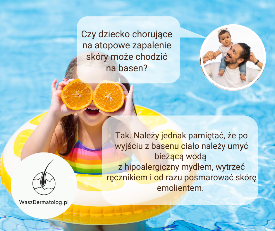 Bardzo istotne jest też to, że w przypadku nasilenia zmian skórnych: dużego świądu i sączących zmian dziecko nie może iść na basen. Dlaczego?