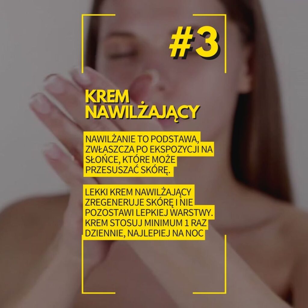 - Krem nawilżający – odbudowuje barierę hydrolipidową osłabioną przez słońce i kąpiele.