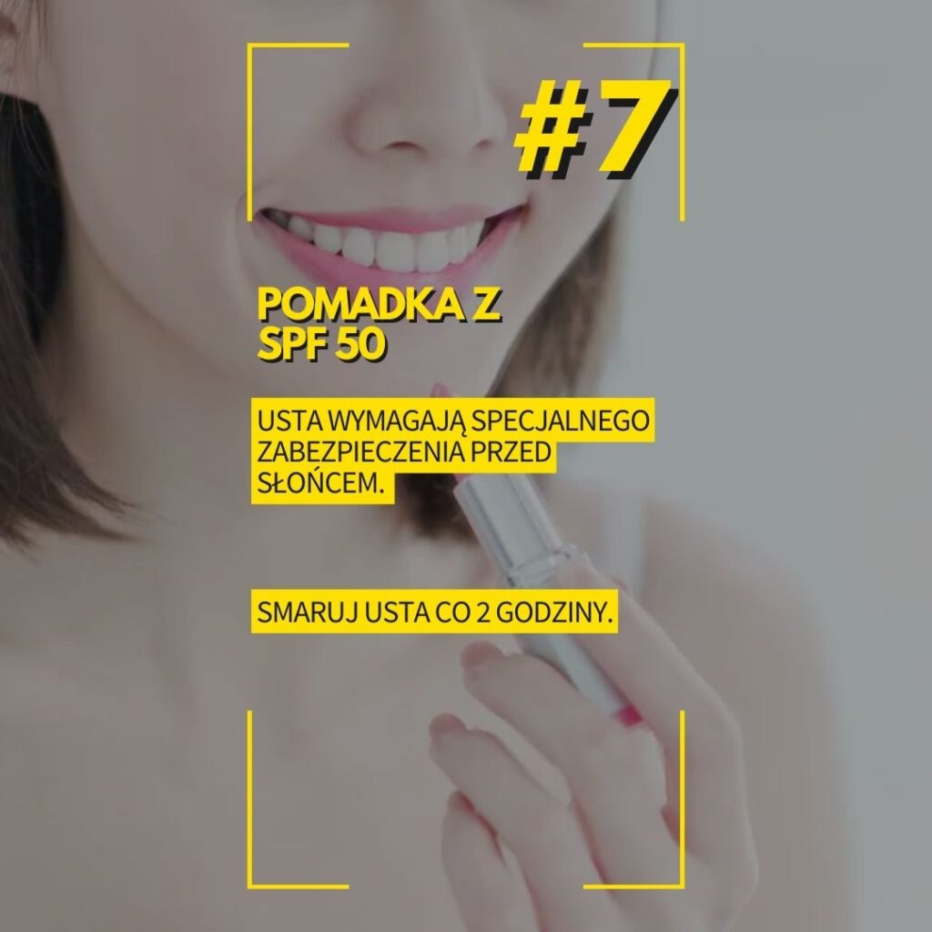 - Pomadka z SPF – usta bardzo łatwo ulegają oparzeniu a pomadka dłużej utrzymuje się na skórze niż krem.